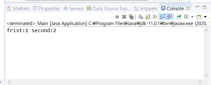 System.out.println("frist:"+first+" second:"+second);
